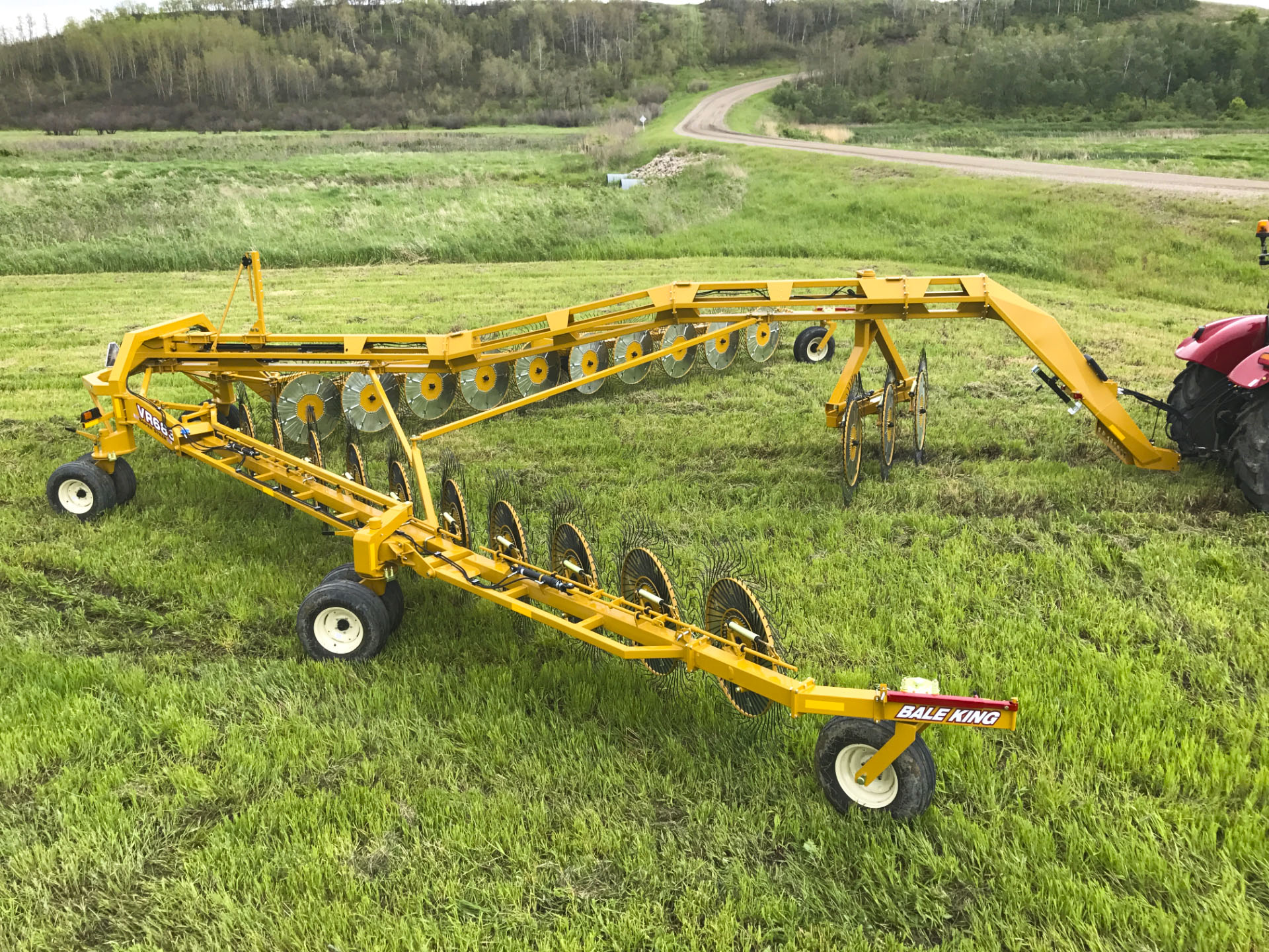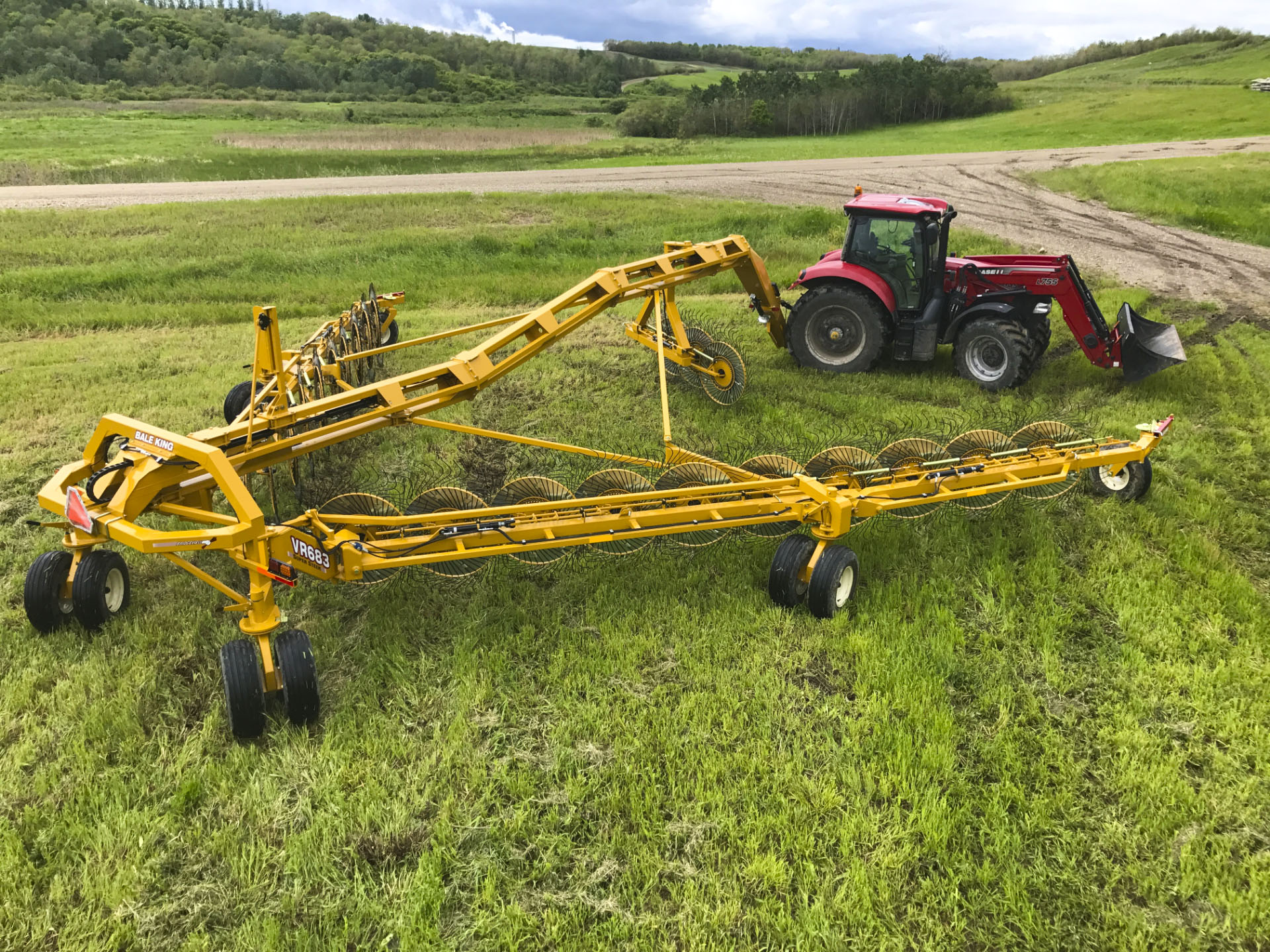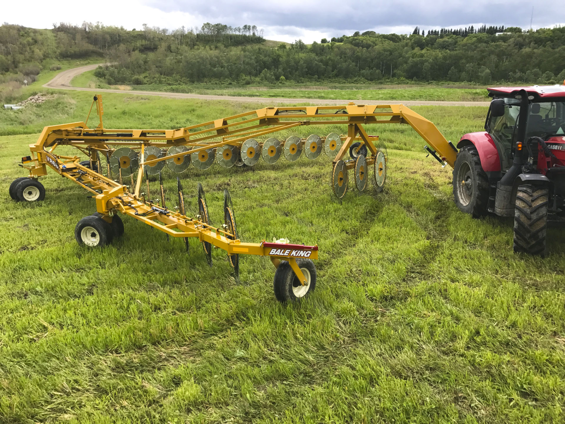 Large rakes usually mean a wide turning radius—but not with the VR683. In Field position, the rake pivots around the center casters, cutting the wheelbase in half. Rear casters pivot freely while the center locks forward, making headland turns effortless.