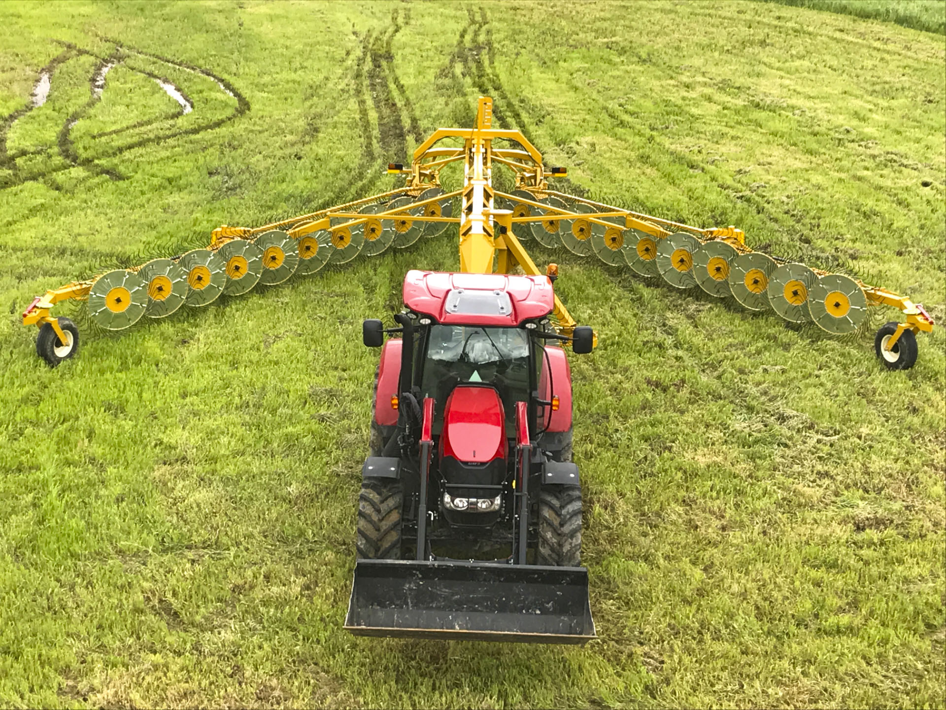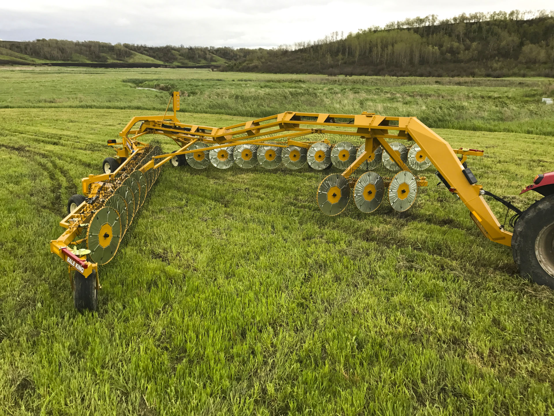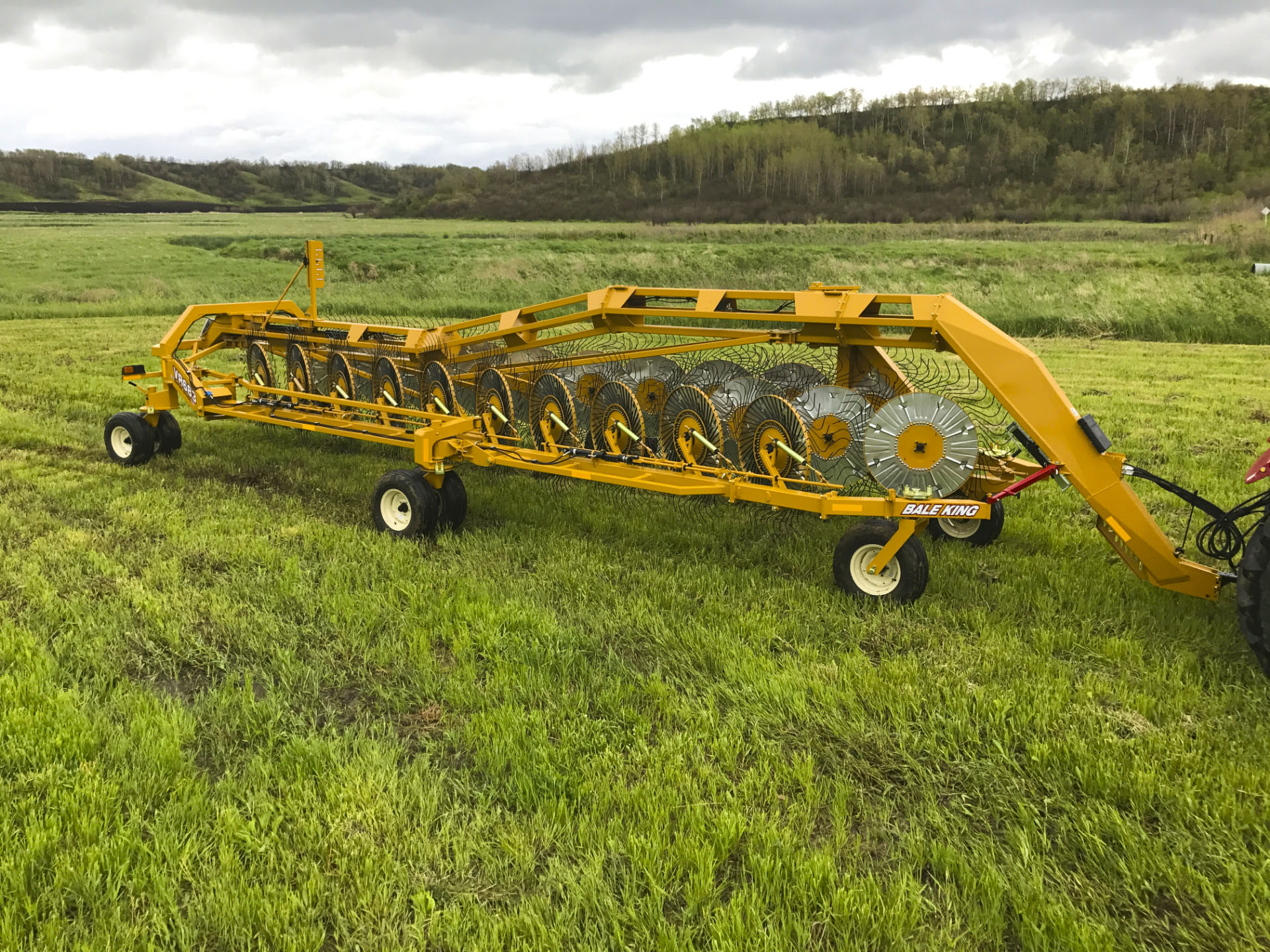 Large rakes usually mean a wide turning radius—but not with the VR683. In Field position, the rake pivots around the center casters, cutting the wheelbase in half. Rear casters pivot freely while the center locks forward, making headland turns effortless.